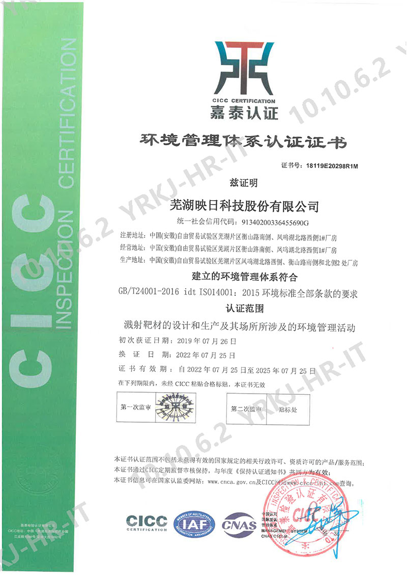 ISO14001環(huán)境管理體系認(rèn)證證書